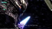 After the party defeats him, escaping their entrapment in an alternate dimension, they try to dissuade the Apostle. However, his thoughts conflict with one another, and the Grigori within Nox Obscurus' core responds to his anguish by merging with him, resulting in a transformation into Satanail. The party then fights him once more. The party then fights the transformed Apostle one last time. Upon Satanail's defeat, the Grigori is destroyed (resulting in Nox Obscurus' collapse) and Faize is returned to normal, no longer in the armor of the Apostle.