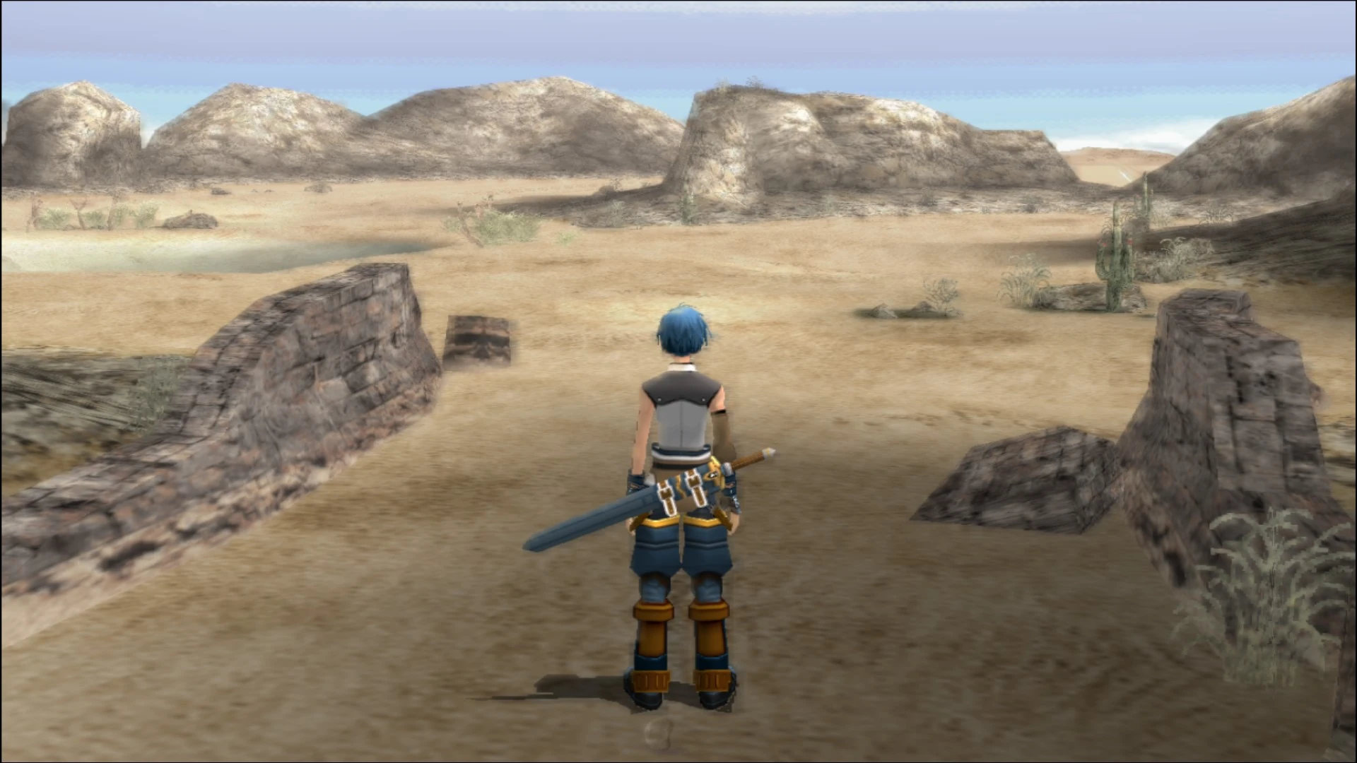 The first time the player arrives to the area, they must traverse the desert by hopping from water spring to water spring in order to survive the harsh conditions of the desert. This can be prevented once the player reaches the Ancient Ruins of Mosel and obtains the Aqua Veil, which allows the player to travel the desert without needing water.