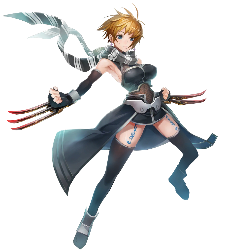 Tynave is a young, self-taught martial artist who enlisted into the Aquarian army during the war against the neighboring Kingdom of Airyglyph. She was assigned to the Secret Legion led by Commander Nel Zelpher, also one of the Queen Aquaria XXVII's Crimson Blade. Given her talents, she rose in the ranks and earned Nel's recognition and trust, enough to be named Acting Commander in case Nel is unavailable.